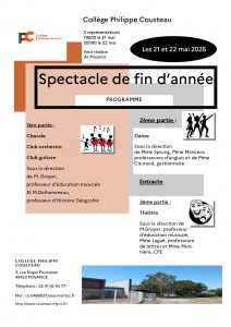 Comme chaque année, le spectacle du collège Cousteau tiendra deux représentations au printemps 2026.