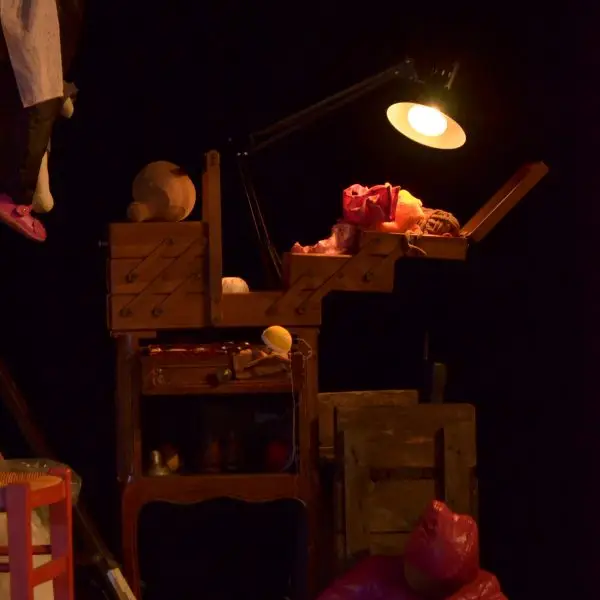 Dans la pénombre d’un atelier artisanal, le Chiffonnier confectionne des poupées en chiffon et s’attache particulièrement à réparer l’une d’entre elles en piteux état.